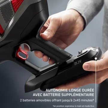- Aspirateur à main : Directement intégré au corps de l'aspirateur balai. Se détache facilement pour une utilisation d'appoint (ex: table, voiture, fauteuil)