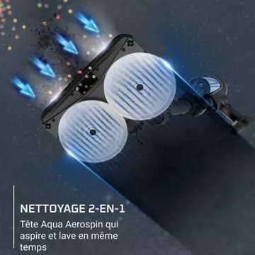 - Brosse ou Accessoire spécial : Tête Aqua Aerospin, qui aspire et lave en même temps