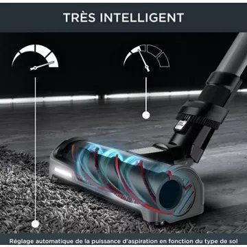 - Détail sur la puissance d'aspiration: : Elle peut varier en fonction du type de sols (parquet, carrelage, tapis, moquette) que vous aspirez et du mode utilisé (standard, éco, boost)