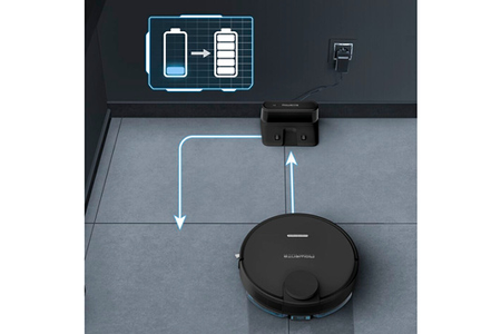 Pour une meilleure performance , ce robot revient automatiquement à sa base de rechargement pour reprendre des forces, puis reprend sa séance de nettoyage là où il s'est arrêté. Ce système de charge intelligente d'une durée de 4h combiné à sa batterie Lithium-ion lui confèrent jusqu'à 225 minutes d'aspiration par jour.