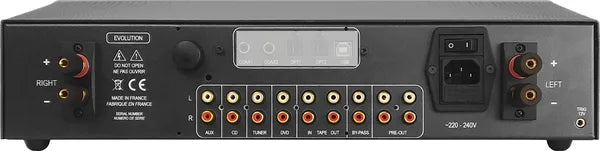 Implantée à l'arrière, la connectique de l'ampli hi-fi Atoll IN200 Evolution se compose de cinq entrées RCA, permettant d'y associer de nombreuses sources comme un lecteur CD, un lecteur réseau ou une platine vinyle pré-amplifiée, par exemple. En outre, une entrée By-pass permet de l'utiliser comme ampli de puissance avec un pré-ampli hi-fi ou home-cinéma, tandis qu'une double sortie pré-out permet d'y coupler un caisson de basses ou un ampli de puissance externe. Pratique, l'ampli Atoll IN200 Evolution pourra également recevoir une carte Atoll DC200 optionnelle pour profiter d'entrées USB, coaxiale et optique pour la lecture des musiques Hi-Res jusqu'à 32 bits / 384 kHz et DSD. Il sera également possible d'y coupler la carte phono Atoll P100 pour y coupler directement une platine vinyle. Enfin, une prise jack en façade permet de profiter de vos sources en toute discrétion.