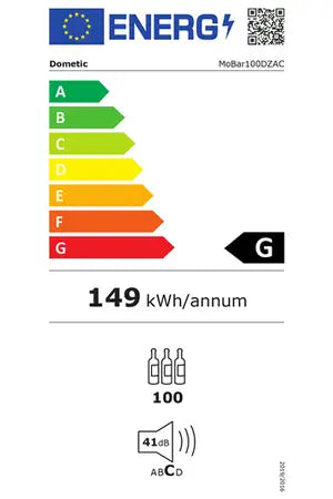 La cave à vin Dometic MOBAR 550S offre élégance et distinction avec sa porte vitrée et son cadre inox : elle s'intègre parfaitement dans les cuisines modernes. Sa capacité est de 39 bouteilles de vin (14 en haut, 25 en bas) 155 canettes (56 en haut, 99 en bas)
