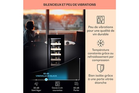 Design élégant et fonctionnement intelligent : La cave à vin encastrable Klarstein Vinovilla 20 est une petite cave pratique qui enrichit chaque espace de vie ou cuisine intégrée avec sa porte vitrée moderne et sa façade en inox - bienvenue chez les pros de la conservation du vin ! Son filtre à charbon actif permet une conservation de longue durée sans odeur et assure aux vins fins une température de consommation optimale.