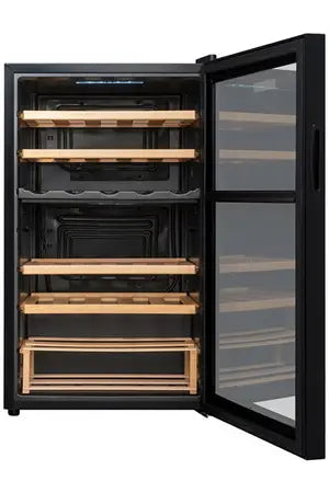 Cette cave à vin accueille vos grands crus. Sa capacité de stockage maximale est de 33 bouteilles : 15 bouteilles dans la zone supérieure et 18 bouteilles dans la zone inférieure.