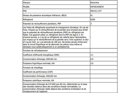 Climatiseur mobile ELECTROLUX EXP26U558CW