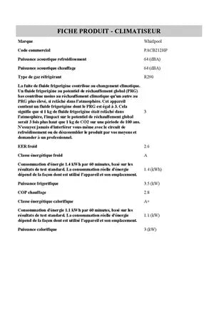 Climatiseur mobile Whirlpool PACB212HP