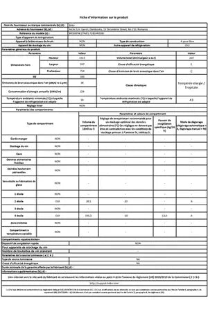 - Volume 220 L - Dimensions (H-L-P) 151,5x59.7x74.4 cm - Classe E - 38dB