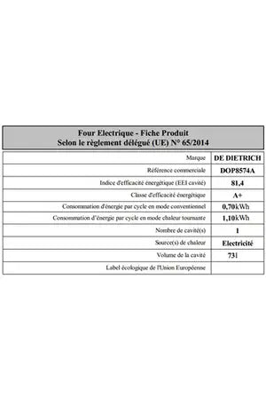 Cuisinez en toute facilité grâce à la grande capacité du four De Dietrich DOP8574A de 73 litres, idéale pour les familles nombreuses ! Votre dîner est prêt, mais vos invités sont en retard ? La fonction maintien au chaud est la solution, elle garde votre plat à la bonne température sans le dessécher. Fini la corvée de nettoyage, il vous suffit d'activer le mode nettoyage "pyrolyse" et vous voilà avec un four propre automatiquement !
