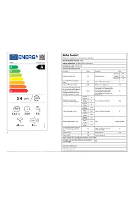 - Capacité 12kg (tambour 80 L) - Classe énergétique A