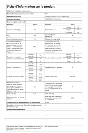 Le lave-linge Miele WCG 360 blanc d'une capacité de 9 kg, est doté de 17 programmes de lavage pour s'adapter à tous les textiles.