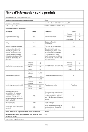 Lave-linge hublot MIELE WCI860