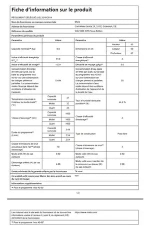 Le lave-linge Miele WQ 1000 WPS Nova Edition est conçu pour offrir des performances de lavage optimales tout en garantissant une durabilité exceptionnelle.