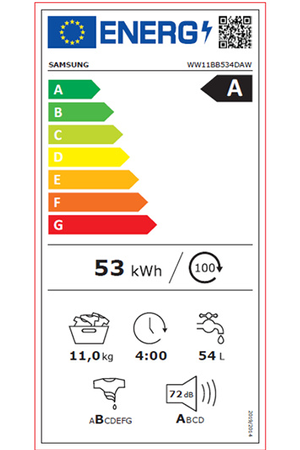 Le lave-linge Samsung WW11BB534DAWS3 blanc avec contour hublot noir, d'une capacité de 11 kg est doté de 22 programmes , d'une Technologie Ecobubble qui transforme la lessive en mousse ultra-performante, même à basse température, d'une option Anti-tache et d'une connectivité WiFi SmartThings.
