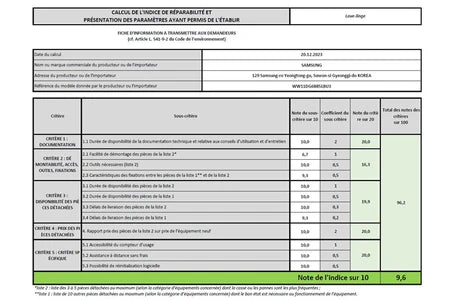 | Indice de réparabilité |