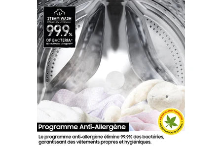2 programmes dédiés utilisant la vapeur pour éliminer 99,9% des bactéries : Draps et Anti-allergènes.