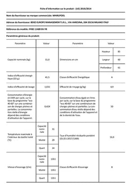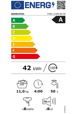 Le Whirlpool FFBD11489BVFR combine une capacité de 11 kg, des technologies avancées comme le 6ème Sens et FreshCare+, et une efficacité énergétique remarquable. Idéal pour les familles nombreuses ou les utilisateurs exigeants.