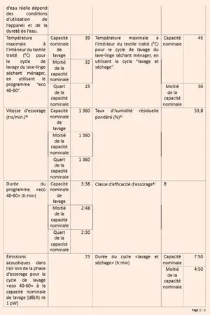 | Consommation d'énergie sur 100 cycles - lavage et séchage |
