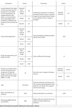 | Durée du programme éco - lavage et séchage |