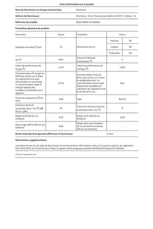 - Consommation d'eau 9.9 L/cycle - Classe énergétique C