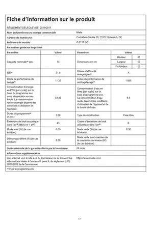 Le lave-vaisselle Miele G7210 SC blanc est doté d'une capacité de 14 couverts, de 10 programmes dont le programme Quick Power Wash et d'un tiroir à couverts 3D Multiflex.