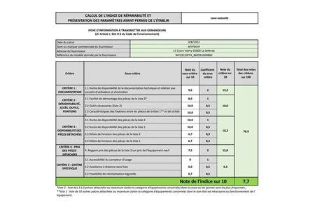 | Indice de réparabilité |