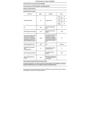 - Consommation d'eau 9.5 L/cycle - Classe énergétique B