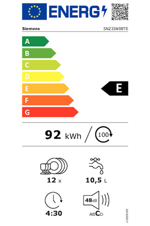 Ce lave-vaisselle Siemens SN23IW08TE blanc d'une capacité de 12 couverts est doté de 6 programmes, de 4 options : HomeConnect, Zone Intensive, Demi-charge, VarioSpeed Plus à la demande et d'un moteur iQ Drive pour un silence optimal. Il est équipé d'un tiroir et paniers VarioFlex pour une flexibilité accrue pour le rangement de la vaisselle à tous les niveaux et d'un panier supérieur qui est réglable en hauteur pour loger les assiettes plus grandes dans le panier inférieur.