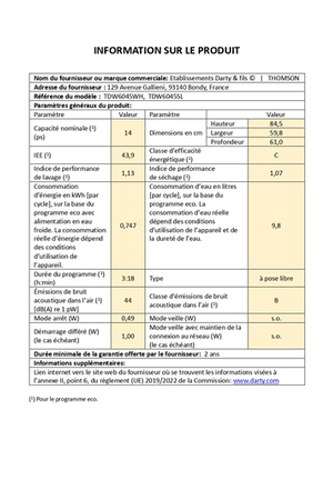 Le lave-vaisselle Thomson TDW6045WH blanc, est doté d'une grande capacité 14 couverts pour accueillir un maximum de vaisselle : idéal pour les familles nombreuses, de 8 programmes : Automatique, Intensif, Normal, Eco, Verres, 90 minutes, Rapide, Rinçage et d'une option demi-charge.