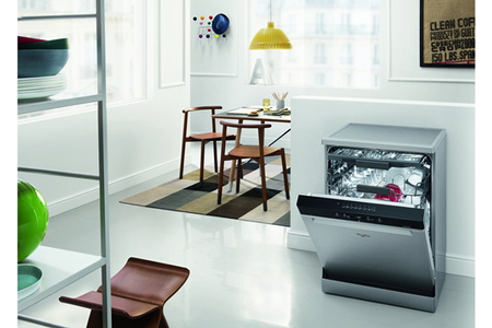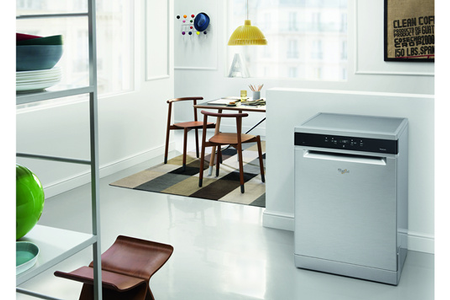 Le lave-vaisselle Whirlpool WFC3C26PX inox , bénéficie d'une capacité de 14 couverts, 8 programmes dont le programme 6ème Sens PowerClean Pro et d'un moteur à induction.