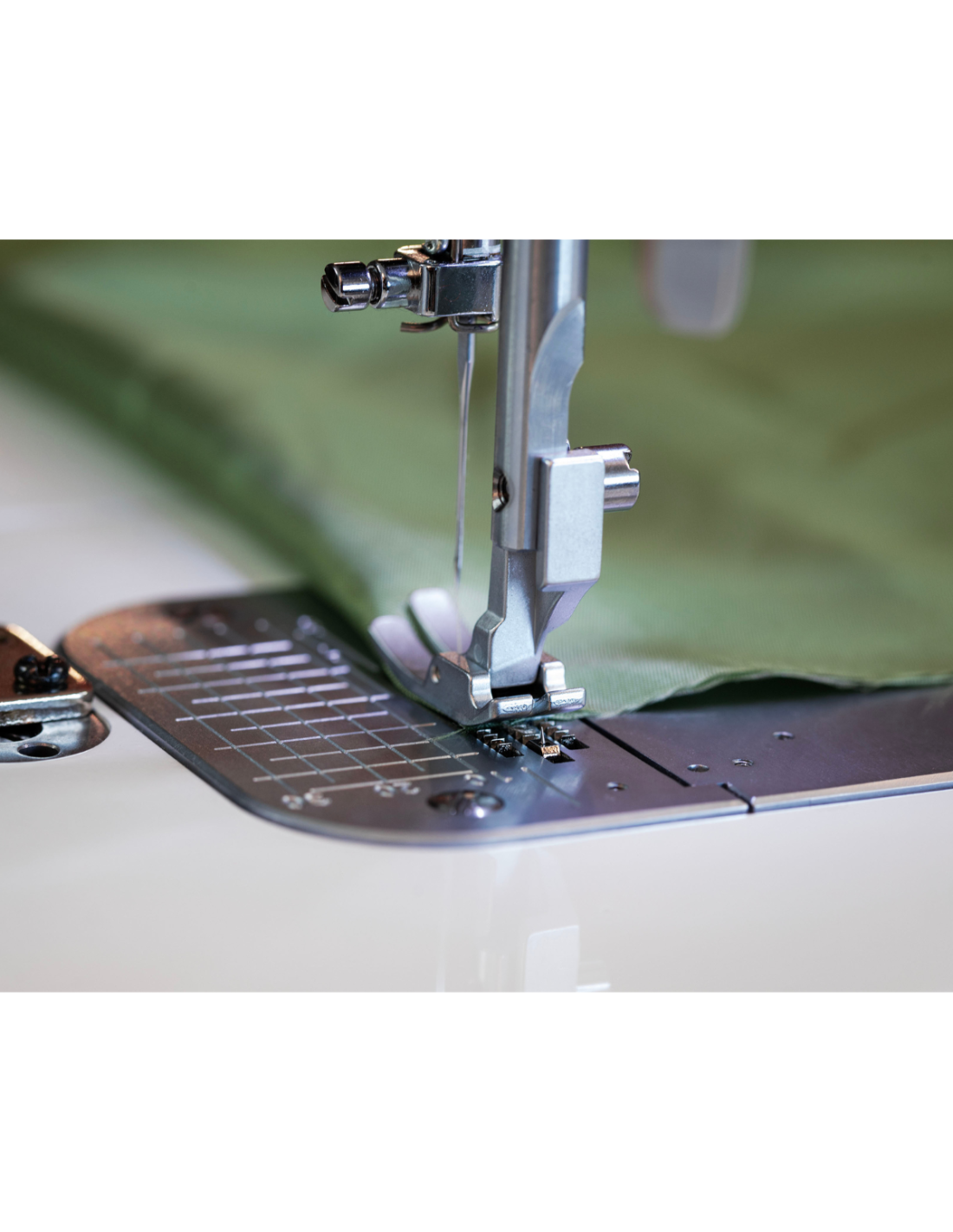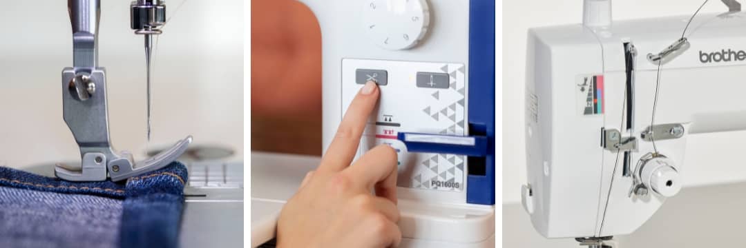 Ce qui distingue particulièrement la PQ1600S, c'est son coupe-fil à bouton-poussoir, qui facilite grandement le travail en permettant de couper rapidement les fils sans avoir à les chercher. De plus, son mécanisme d'alimentation à épingles offre une flexibilité incroyable. Il permet de modifier la hauteur des griffes d'entraînement. Ainsi, il est très facile de déplacer toutes les couches d'un quilt ou de travailler sur des tissus délicats tels que le velours, sans laisser de traces disgracieuses.