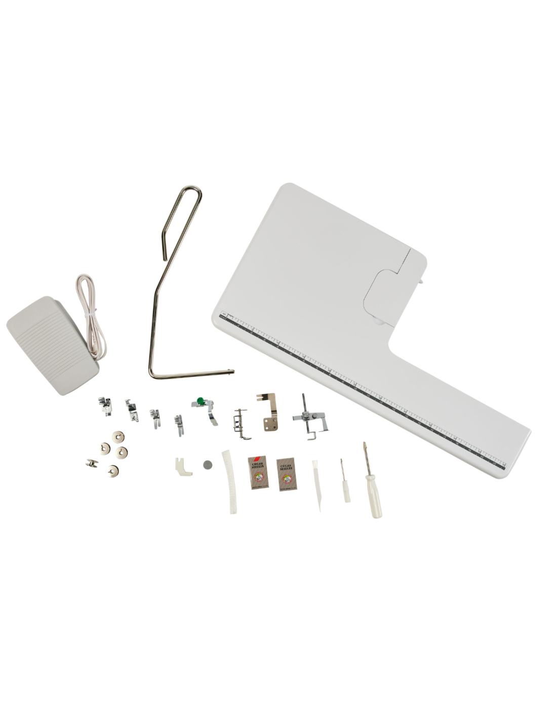 Également inclus : Pédale, table d'extension, manuel d'instructions, housse semi-rigide.