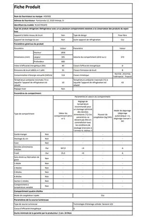- Volume 372 L - Dimensions : (H-L-P) 185,6 x 59,5 x 60 cm - Classe D - 35 dB