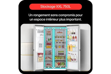 Avec un volume total de 638 litres (417 L pour le réfrigérateur et 221 L pour le congélateur), le GSLC40EPFE offre un espace de stockage généreux, idéal pour les familles nombreuses ou les amateurs de batch cooking.