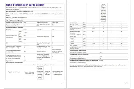 - Volume 414 L - HxLxP : 205 x 59.5 x 66.7 cm - Classe C - 35 dB