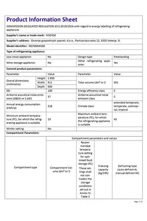 - Volume 591 L - Dim. HxLxP : 190 x 91.1 x 60 cm - Classe E - 37 dB
