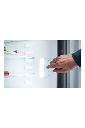 Le bouton lisse est intégré à l’intérieur, pour laisser plus de place à vos aliments frais.