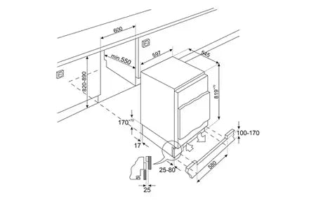 - Encastrable - Volume 110 L - Dimensions : (HxLXP) : 81.9x59.6x54.7 cm - Classe E - 38dB