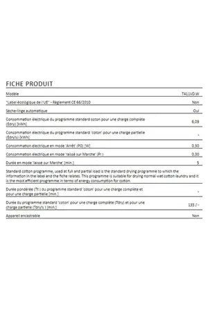 Pour votre sécurité, ce sèche-linge bénéficie de la sécurité enfants, du verrouillage bandeau, signal sonore en fin de programme, du système anti-surchauffe et d'un système Auto-diagnostic SAV.