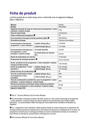 Le sèche-linge Proline PROHP82 blanc avec départ différé mat, est doté d'une capacité de 8 kg pour accueillir une quantité importante de linge,